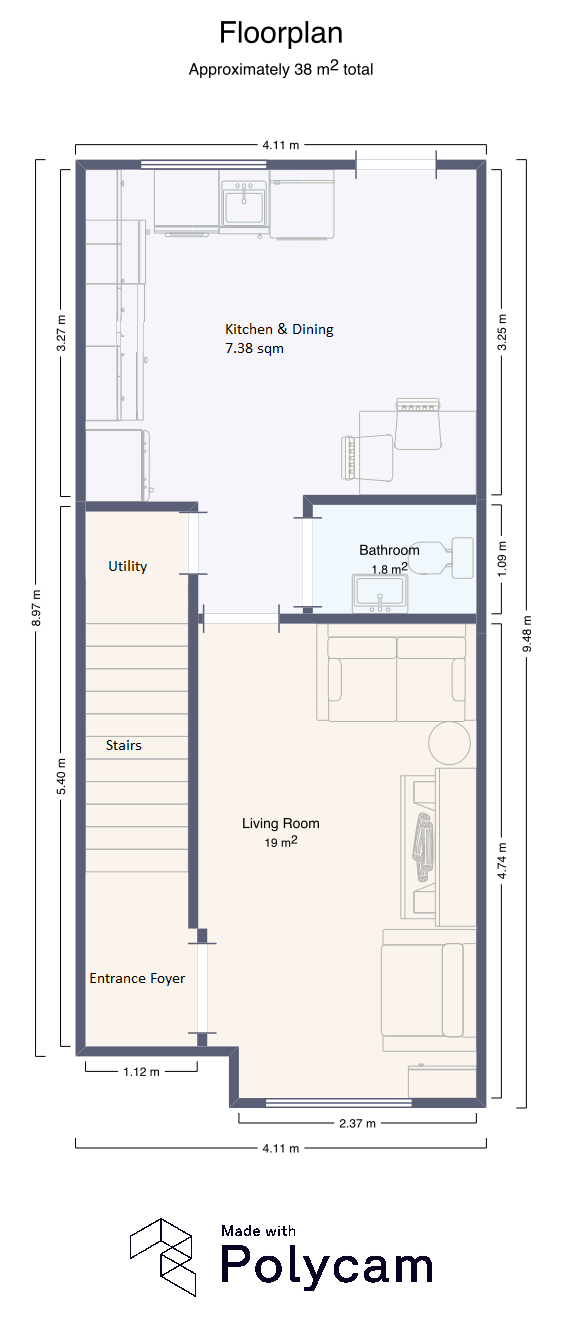 The accommodation consists of a large living area with feature fireplace, separate kitchen with fitted units, separate utility space and guest WC completes the ground floor.