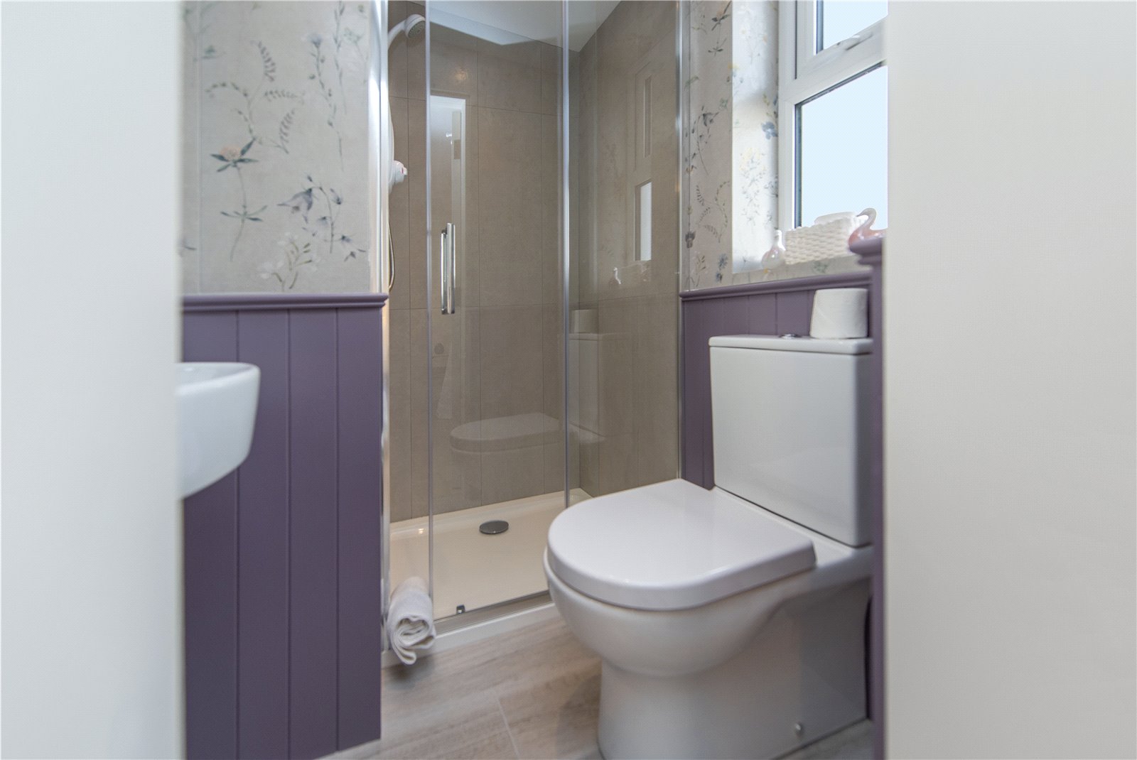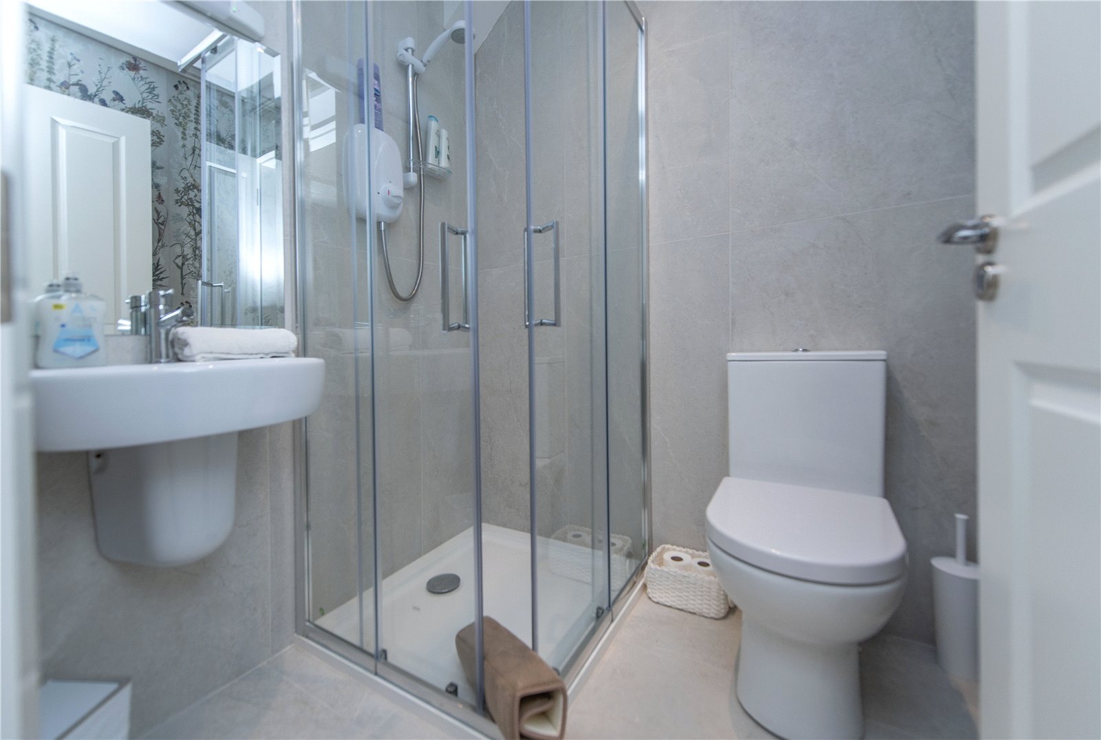 The ground floor consists primarily of an open-plan kitchen-reception area with modern finishes & access to the private patio, and is completed via separate guest bathroom & storage/laundry space.