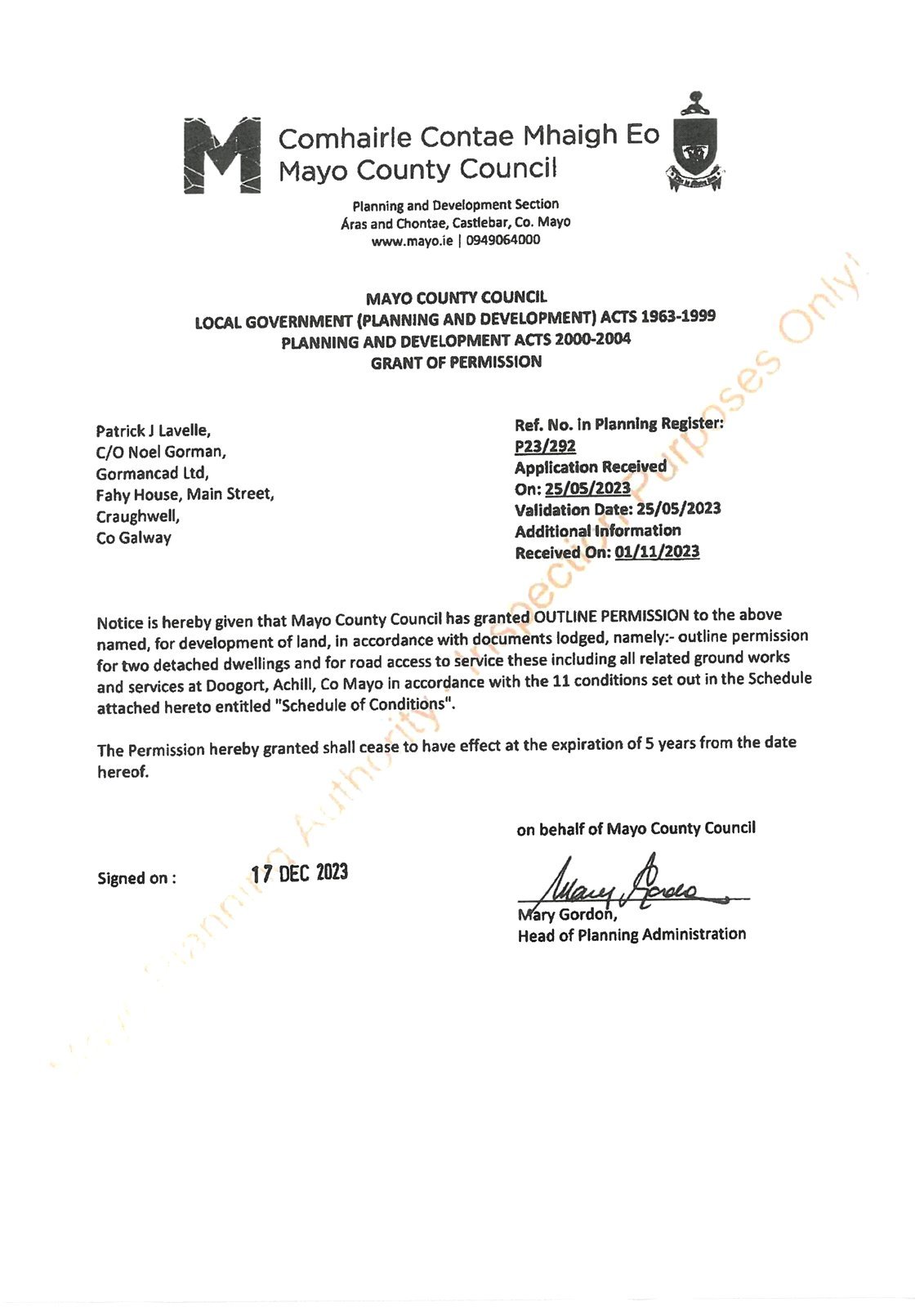 Full particulars are available by contacting Niall Browne 0866009523 or niall@odj.ie