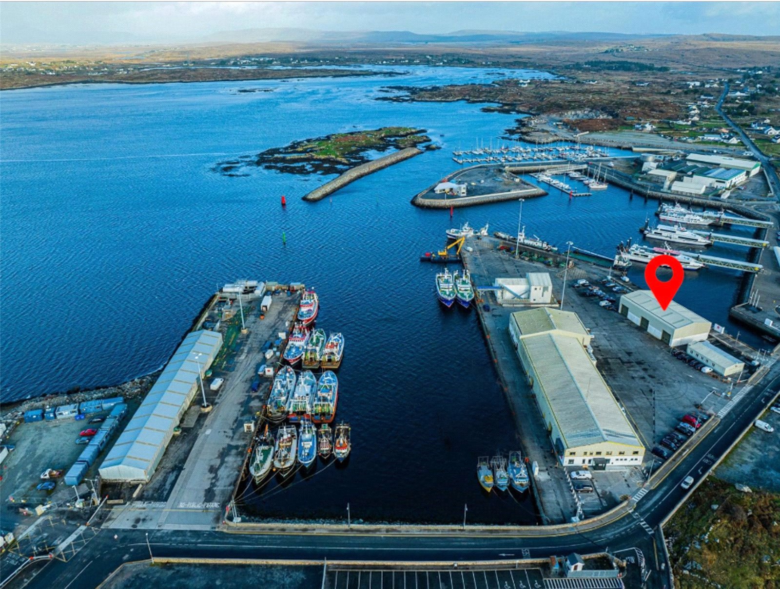 The property commands a strong presence within Rosaveel Harbour and overlooks the Ferry Port. Rosaveel harbour is the largest fishing harbour on the West Coast and is currently subject to significant investment. The Department of Agriculture, Food and the Marine has signed off on a €25 million package to allow for the construction of a deep-water pier at the port. It is the latest stage in a long running effort to enhance the harbour's appeal for larger fishing vessels and bring facilities up to par with major fisheries hubs such as Killybegs in Co Donegal and Castletownbere in Cork.